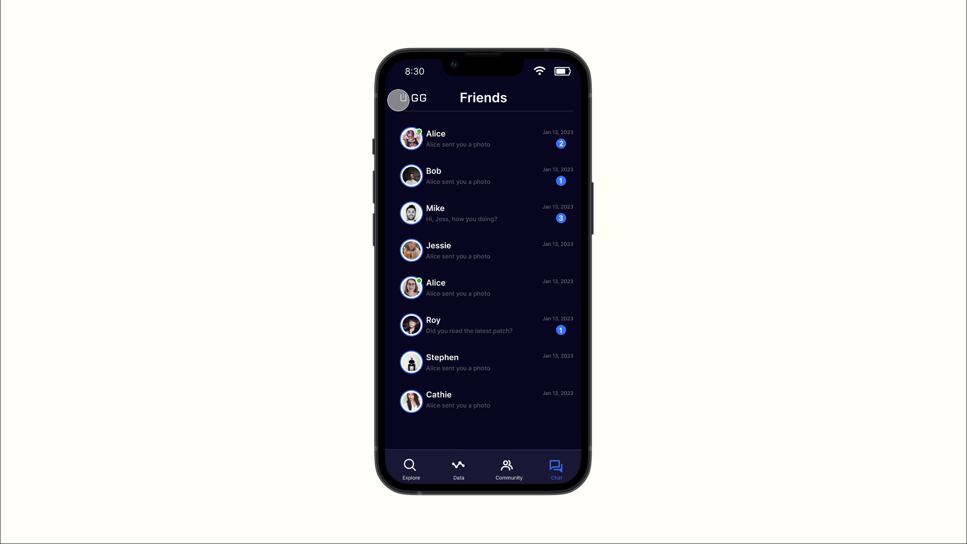 The chat section allows users to start private conversations with friends and supports sending voice, emojis, and pictures. In the friend list, users can see the last active time of their friends. Users can open their friend's profile to view their information and game history by clicking on the friend's avatar.