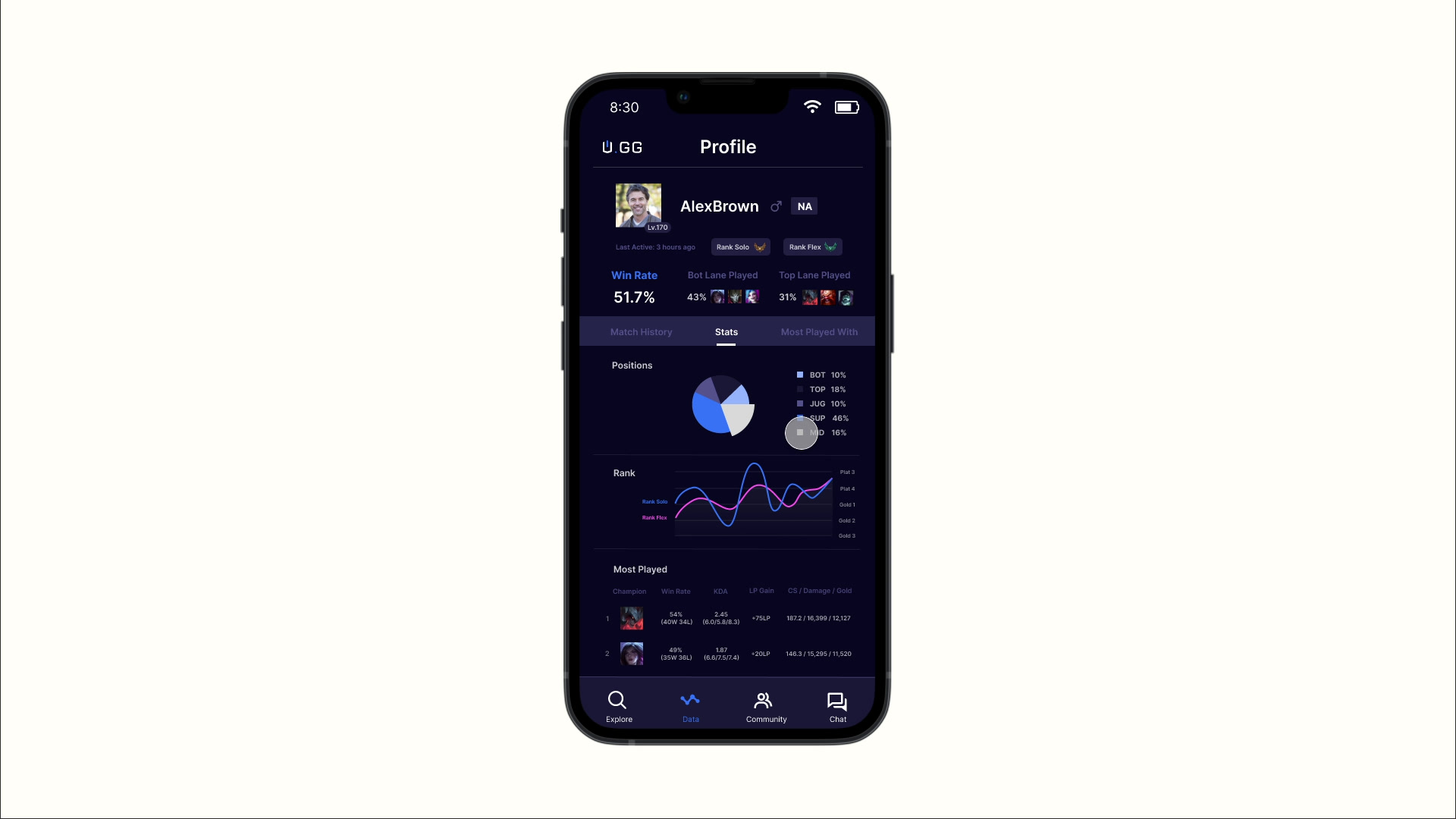 The functions of the website are ported to the mobile client, including search, social, community, statistics, data visualization and other functions. The integrated system, which is more professional than competing products, can help high-level game users view multiple information and statistics on the same page, and the use of icons and visual charts ensures intuitiveness and aesthetics.