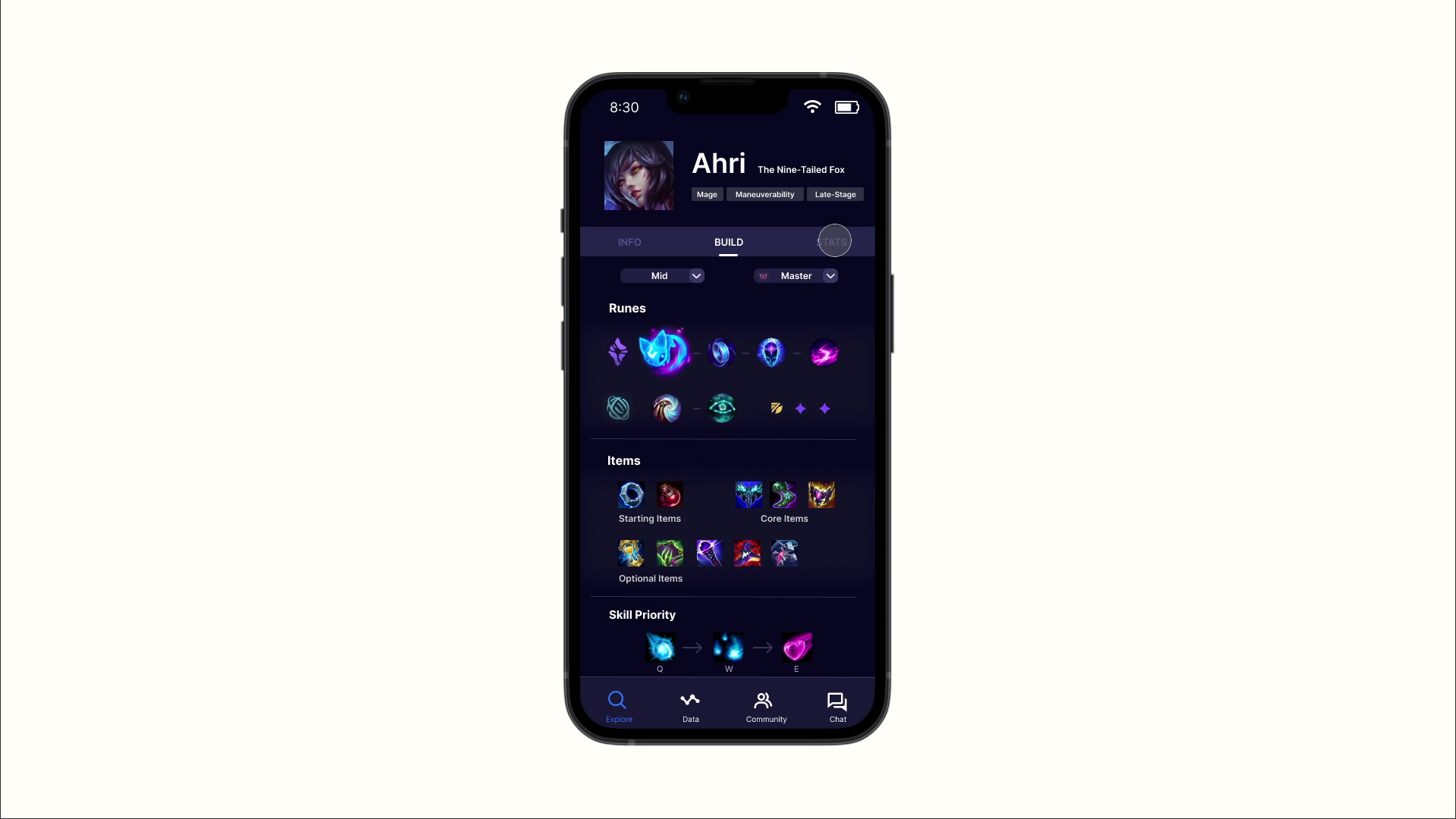 Always up-to-date, U.GG APP provides an all-rounded champion ranking with a data science approach for players to view real-time data of each champion. In the tier list, users can easily find the champions' win rate, ban rate, runes, summoner skills, skill priorities, and counter picks in the drop-down menu.