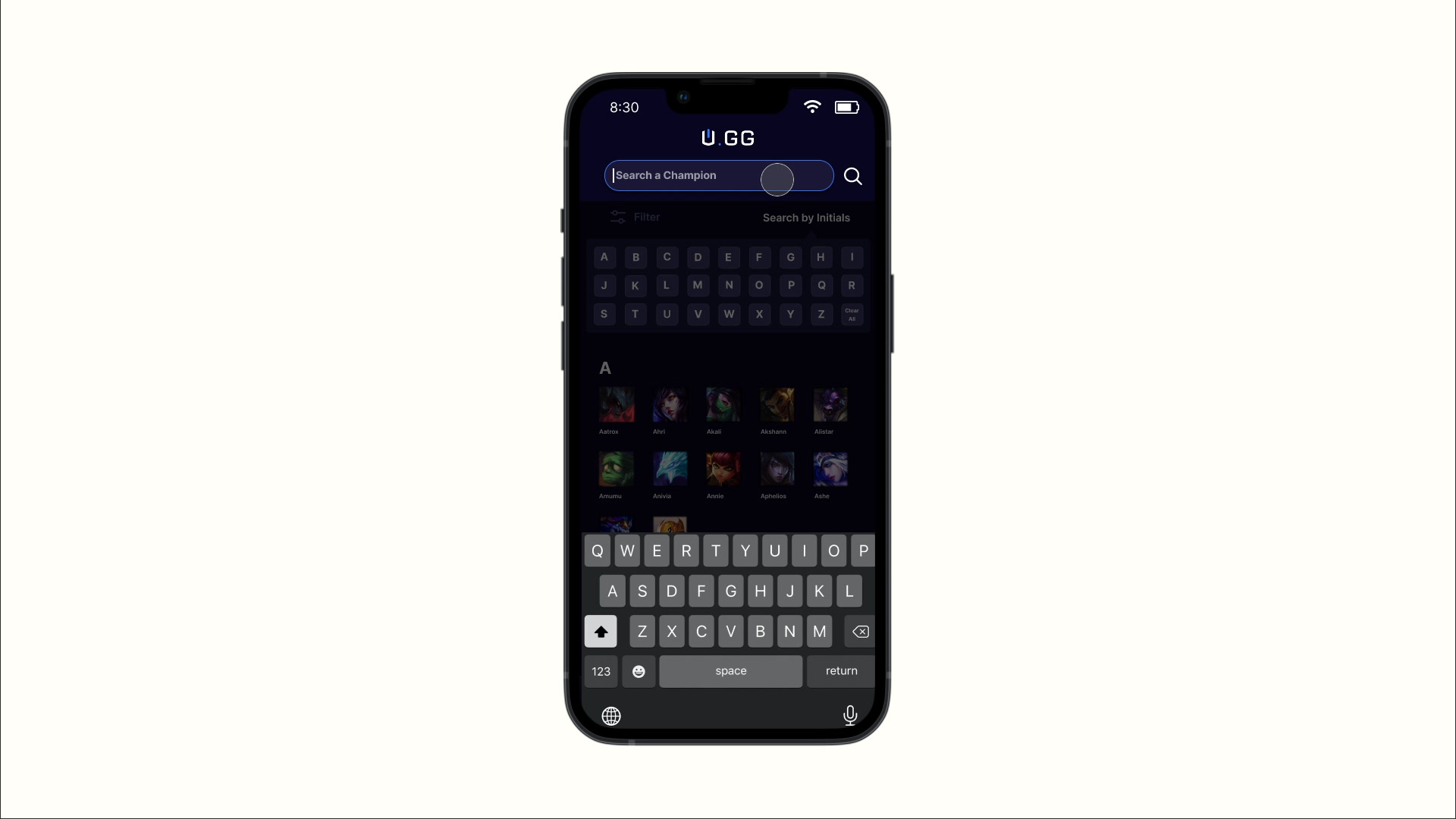 Sorted 162 champions in the game by their initials, and supported search by name and title. The filter of our U.GG APP also supports users to filter and search by labels such as role order, rank, counter picks, etc.